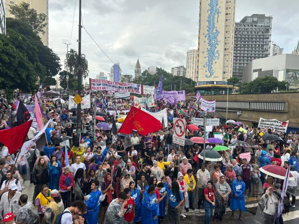 Mesmo sob alerta de chuva, milhares de mulheres, trabalhadoras, sindicatos, centrais sindicais e movimentos sociais ocuparam as ruas para denunciar o aumento dos casos de feminicídio e defender políticas públicas de prevenção à violência contra as mulheres.
